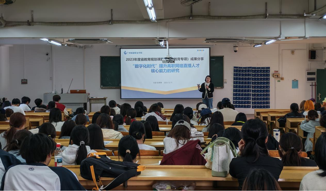 12月11日,我院新媒体教研部邀请张琴琴副教授开展2023年度广东省教育科学规划课题(高等教育专项)成果分享会,聚焦数字化时代高职网络直播人才培养,作为课题负责人面向新媒体专业群师生,系统分享了课题研究的核心成果与实践应用路径,为师生解答了课题研究与成果转化的方式方法。