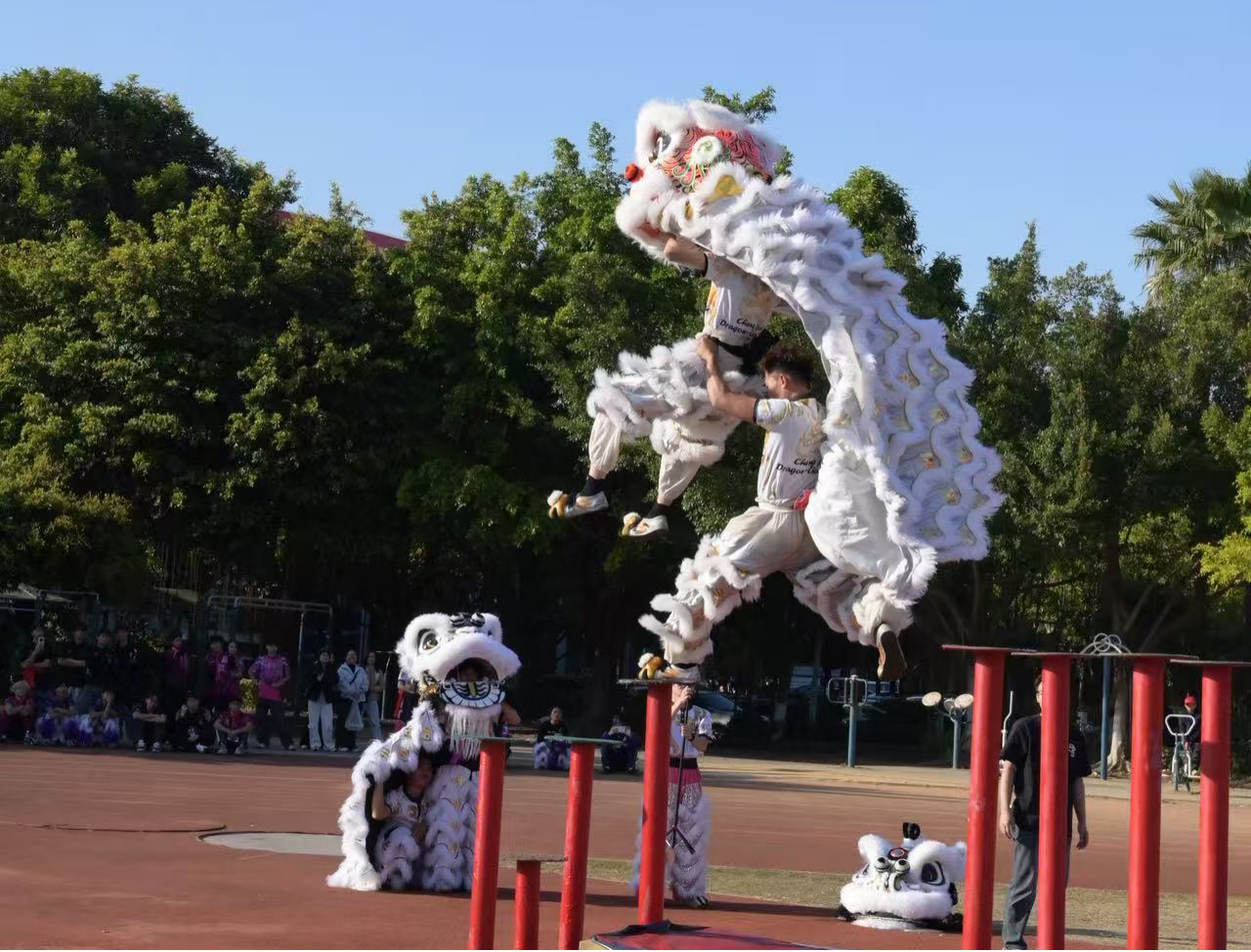 随后,各代表队轮番登场,尽展风采。只见雄狮矫健,或“摇头摆尾”,或“高桩采青”,神态逼真,惊险纷呈。铿锵有力的锣鼓节奏与队员们默契协调的腾挪跳跃完美配合,将醒狮的威猛与灵动诠释得淋漓尽致,引来现场观众阵阵喝彩。除了传统套路展示,部分队伍还融入了现代舞蹈、戏剧元素,令人耳目一新,展现了年轻一代对传统文化的创造性理解和演绎。