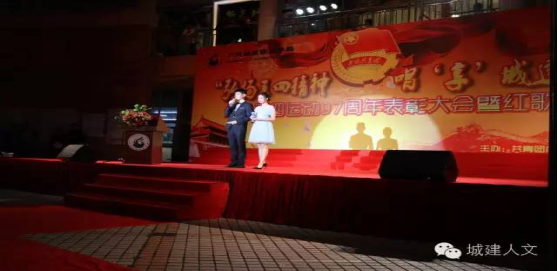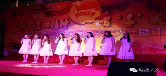 为大力推进素质教育,加强我校精神文明建设,进一步培养当代大学生爱国情操,5月26日,我校在二区小广场成功举办弘扬五四精神 ,唱“享”城建梦想红歌大赛暨2015-2016学年共青团工作总结表彰。