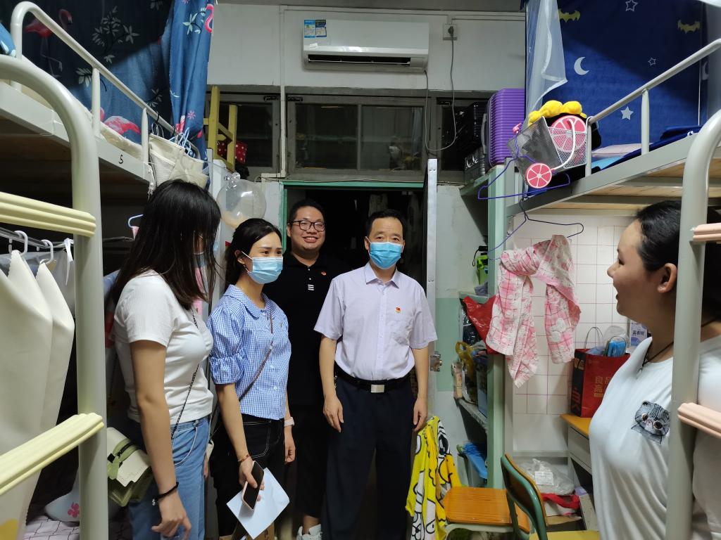 6月28日为人文学院19级学前教育专业学生返校日。为做好学生返校后疫情防控工作,调研开学后学生在学习生活方面存在的困难和急需解决的问题,不断提高服务质量和水平,晚上8:00,学校党委副书记兼人文学院院长鲁岩在学院党总支副书记彭聪、19级辅导员的陪同下来到学生宿舍看望慰问返校学生。