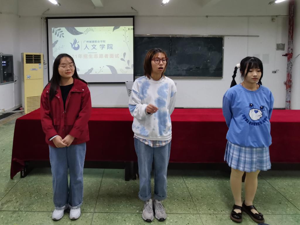 本次面试吸引来自学院53位同学积极报名,在现场面试中有的展现了工作技能,有的通过现场模拟介绍学校和学院,有的展现家乡特有的语言文化。最终经过资格审查、现场面试答辩、辅导员意见等环节,拟批准19学前教育2班的陈清怡等15名同学担任新一届招生志愿团队成员。