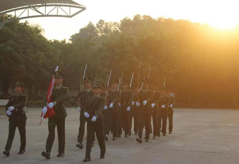 早上6:50,在铿锵有力、整齐划一的脚步声中,国旗护卫队护送五星红旗缓缓进场,升旗仪式全体师生齐唱国歌,行注目礼。升旗仪式后,学生代表林海容同学与全场师生一起进行爱党爱国学习,她朗诵了人民日报文章《百年奋斗,初心弥坚》,铿锵有力的声音迎来阵阵掌声。随后,彭聪作国旗下讲话,他从建党的开天辟地,到新中国成立的改天换地,到改革开放的翻天覆地等篇章介绍了党史,要求广大师生员工要以习近平新时代中国特色社会主义思想为指导,深入学习贯彻党的十九大精神,树牢“四个意识”,坚定“四个自信”,坚决做到“两个维护”。最后,彭聪向全体同学提出三点要求:珍爱生命,懂法守法;勤奋好学,加强锻炼;知书达理,懂得感恩,希望同学们能够珍惜在校时光,奋发图强,为祖国的繁荣建设和中华民族伟大复兴做出贡献。