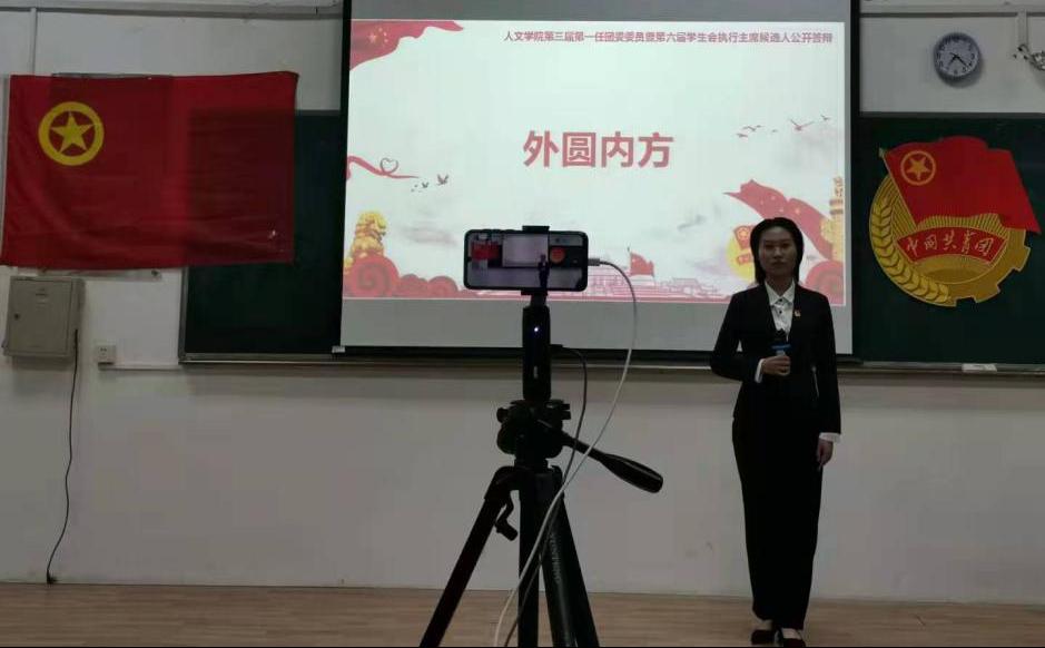为深入学习贯彻习近平总书记视察清华大学重要讲话精神,加强团学组织队伍建设,6月8日19:00,人文学院在人文艺术楼605阶梯课室召开团委第三届第一任委员候选人和学生会第六届执行主席候选人公开答辩会,团委书记李垚森、党建办公室指导老师李艳霞、学生党支部书记徐可欣、社区指导老师赖明君、心理辅导站指导老师马爱云以及全体团委、学生会干部和线上观看的各班级代表参加活动。