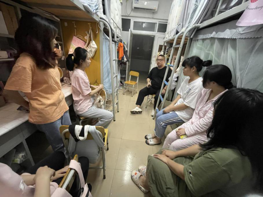 为进一步落实学院领导干部联系基层,加强常态化疫情防控下学生教育管理工作,引领学生健康成长,6月20日晚上8点,人文学院党总支副书记、副院长彭聪在辅导员老师马爱云的陪同下走访了15栋学生宿舍。