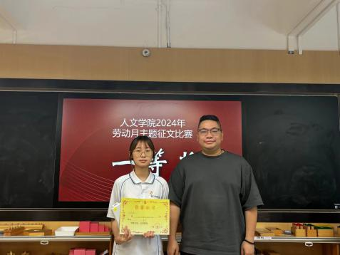此次大赛通过撰写征文抒发当代大学生热爱劳动、一起劳动,引导学生领悟劳动精神,树立正确的劳动观念,营造全社会关心和支持劳动教育的良好氛围。大赛吸引众多学生的积极参与,经过主办方的评选,最终23学前教育实验班刘思倩同学获得一等奖。最后,李垚森在作活动总结时说到,本次大赛以“劳动最光荣”为主题,鼓励大学生撰写征文形式表达对劳动的热爱和对劳动精神的理解,并且把自己的劳动事迹分享给身边的同学,形成广泛传播,积极引导大学生热爱劳动、参与劳动。