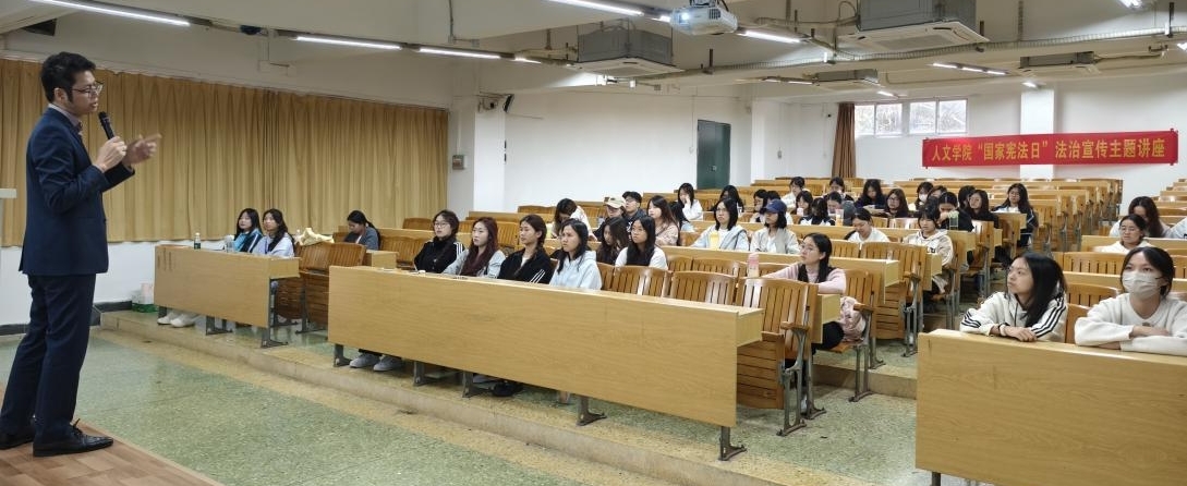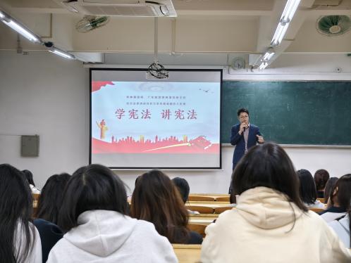 12月5日下午,我院团委于在人文艺术楼205阶梯教室举办“国家宪法日”的法治宣传专题讲座,特邀广东知誉律师事务所主任李神康作为主讲嘉宾,我院团委书记李垚森、2023级和2024级班级学生代表近100人参加讲座。
