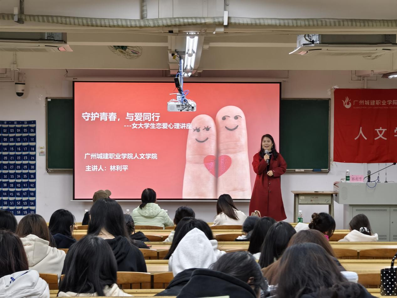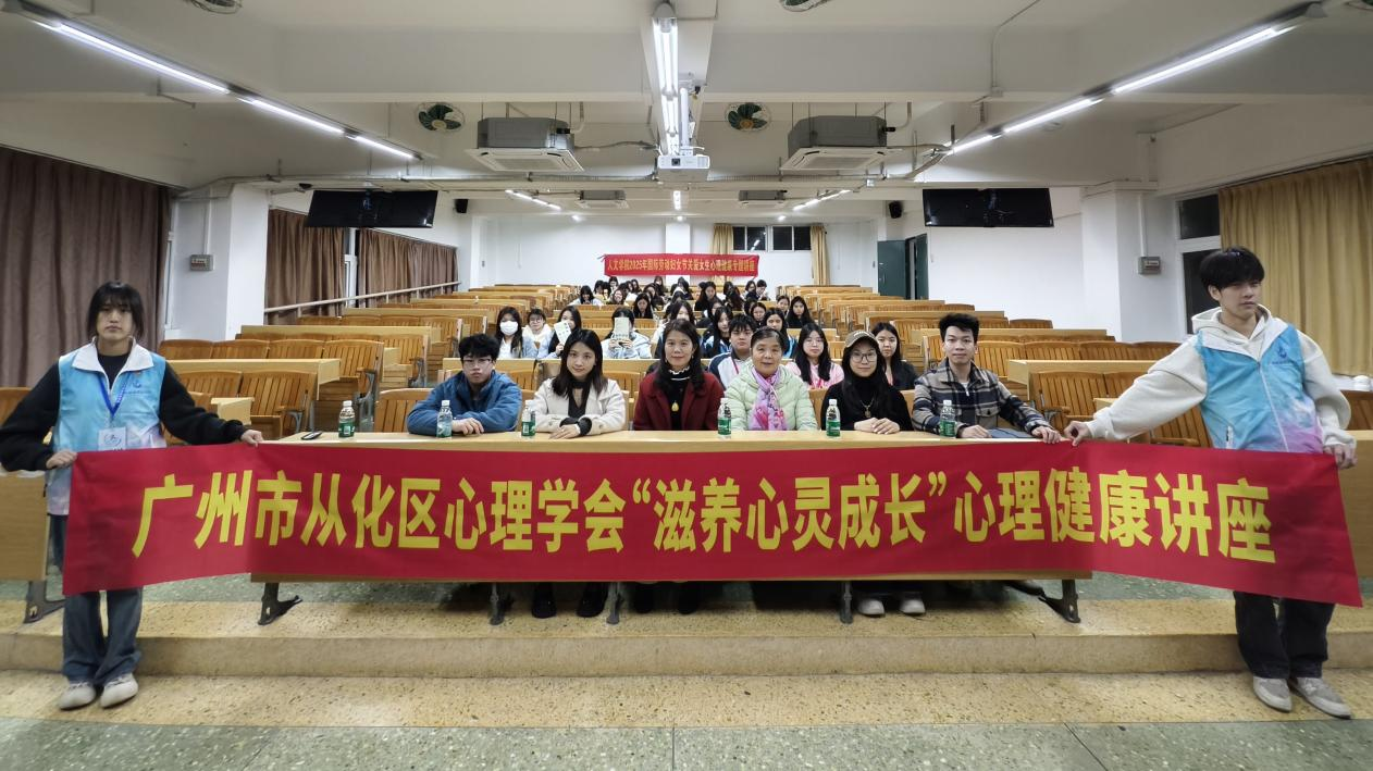 正值2025年国际劳动妇女节来临之际,3月6日晚,由我院学工办、团委联合从化区退休科技工作者协会、从化区心理学会共同举办的主题为“守护青春,与爱同行”女生心理健康讲座在人文艺术楼224阶梯教室举行。从化区退休科技工作者协会秘书长刘少娟、团委书记李垚森、从化区心理学会副会长林利平、从化区心理学会副秘书长黄珊瑜和班级学生代表参加讲座。