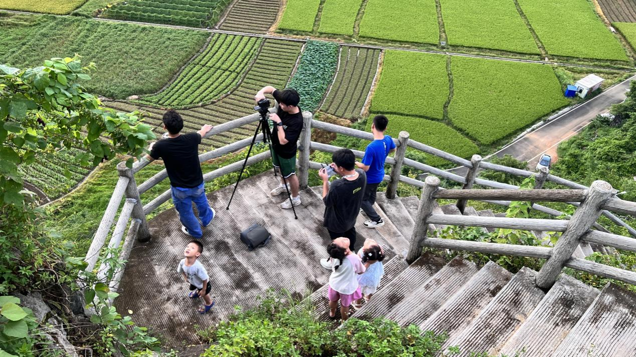抵达苹塘后,突击队迅速与镇政府深度对接。苹塘镇委书记彭良艺高度重视,亲自参与研讨,共同敲定主题片的叙事框架,力求全方位展现苹塘独特的自然与人文魅力。在驻镇帮镇扶村工作队第一书记王海侨及文化站站长甘炎昊的全程协调与实地引导下,团队高效深入喀斯特山林、田园秘境、千年溶洞、传统村落等核心场景,精准捕捉苹塘文旅精华。