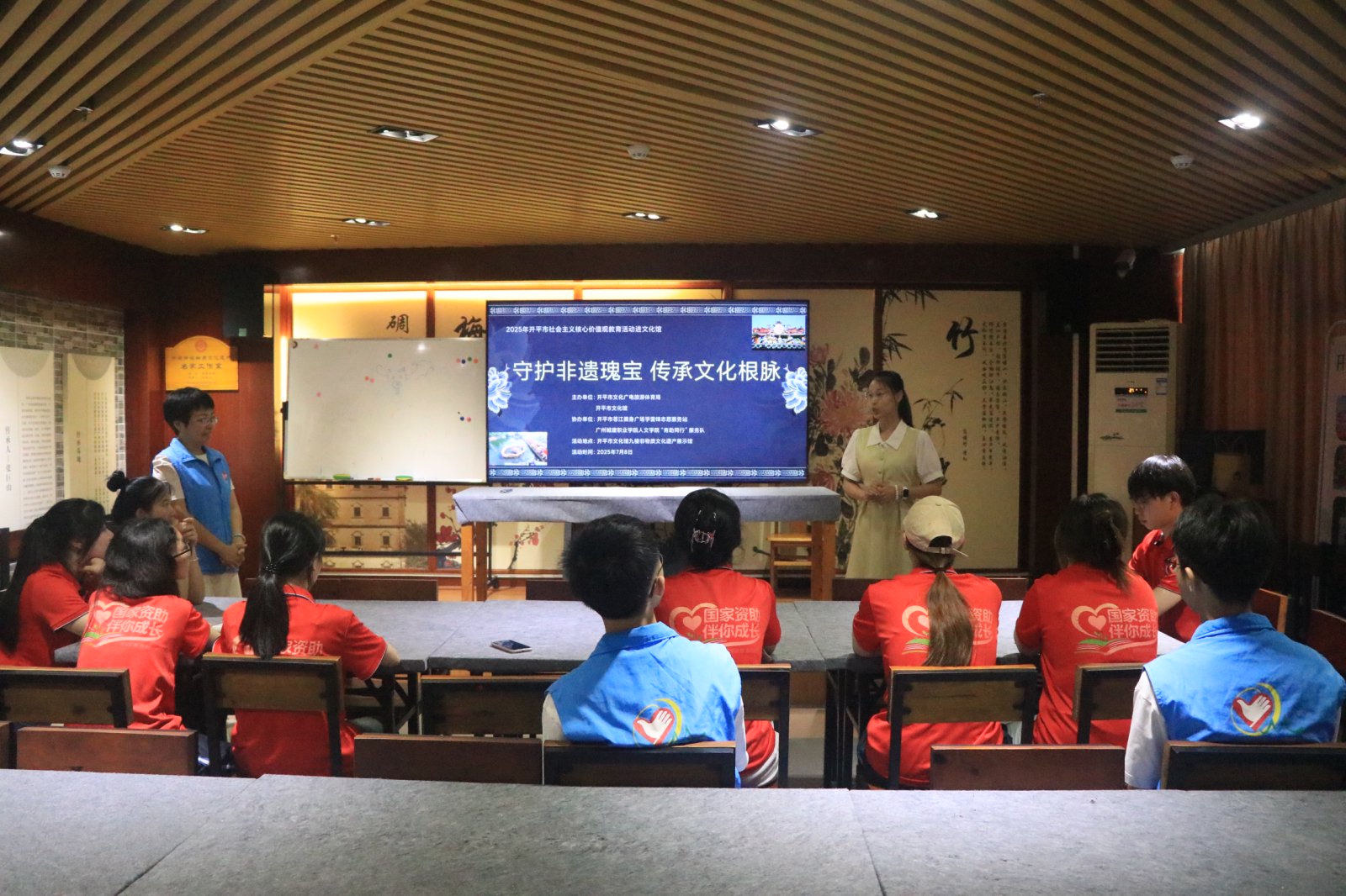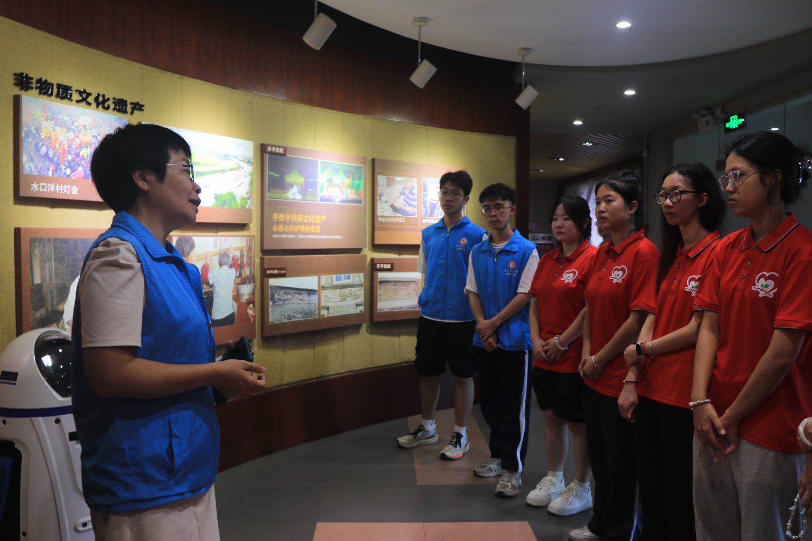 在开平文化馆,服务队开启了一场触摸侨乡文脉的文化之旅。队员们探访碉楼营造、泮村灯会等非遗展区,聆听民歌里的侨乡故事,在亲手体验老手艺的过程中,感受文化传承的温度与力量。雷锋站站长谭玉琼为我们的队员详细讲解了开平市的各项非遗技艺内容以及地方文化历史,文化馆业务干部廖雨婷就开平非遗发展情况与队员们开展互动交流,让队员们深刻认识到“文化不是博物馆里的展品,而是流淌在生活中的烟火气”。