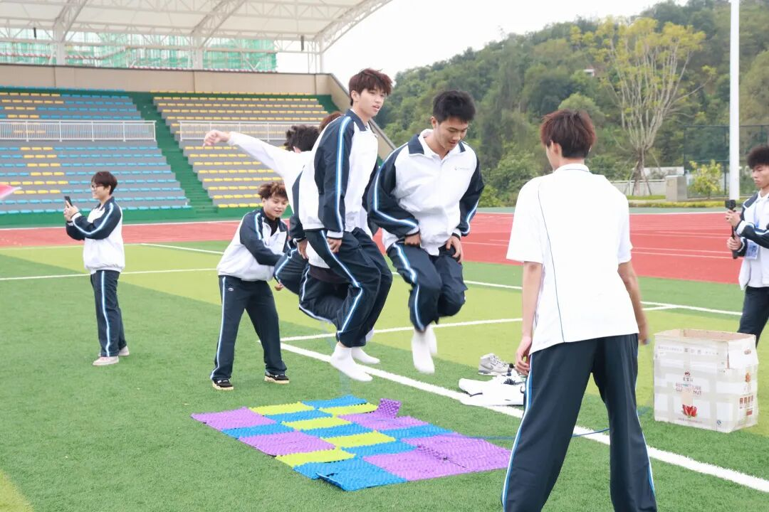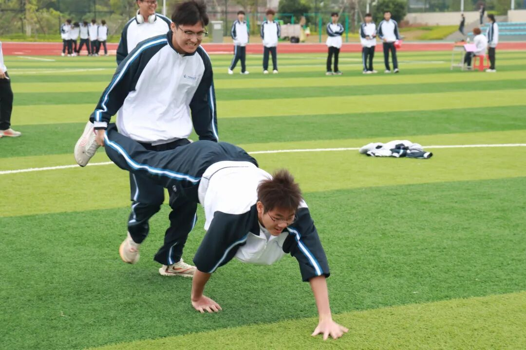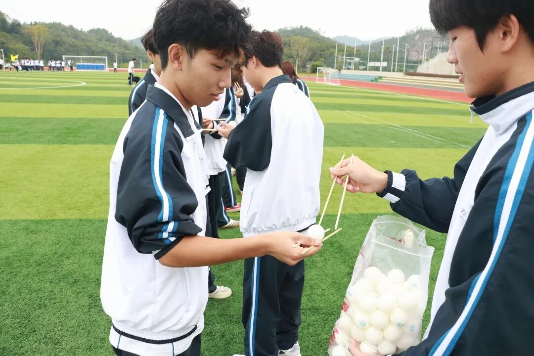 运动会设置了“吸管传皮筋”“多人多足”“天旋地转”“筷子传乒乓球”“拖拉机出动”“指压板跳大绳”“疯狂的设计”“身传呼啦圈”“集体离地拍照”“激情传递”“心心相印”等十一项趣味项目。同学们在协作中增进了解,在挑战中激发潜能,现场气氛热烈,欢笑不断。