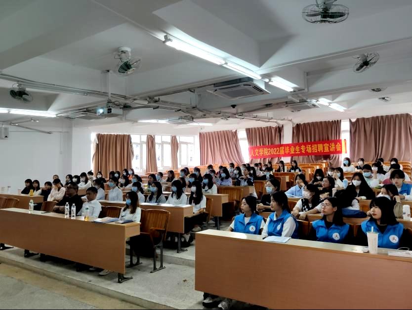 10月27日下午2:30,人文学院在信工财经楼619阶梯教室开展学前教育专业首场招聘宣讲会,中雅教育集团总经理张军平、校企合作部经理张少雪、人文学院副院长彭聪、毕业班辅导员刘颖诗、黎诗敏及2022届学前教育专业学生参加宣讲会。