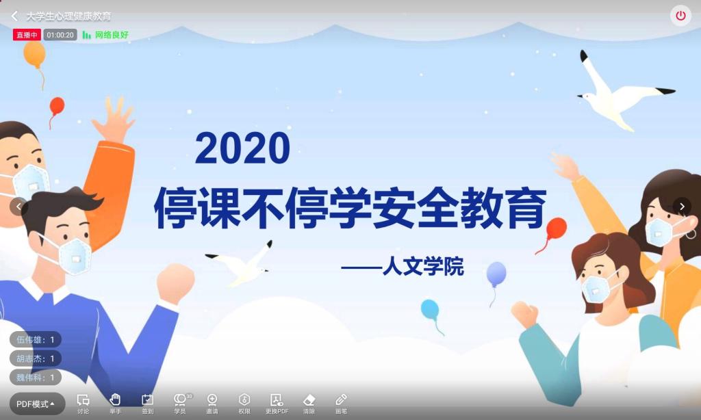 为做好学生复学前后工作,确保学生心理健康和生命安全,秉承抗疫、防疫、暖心与育人结合的工作原则,积极行动,主动作为,多措并举。结合我校开展“健康教育第一课”和525心理健康月的相关要求,人文学院学工办5月份采用多种形式共开展了25场线上心理健康与安全教育课程。