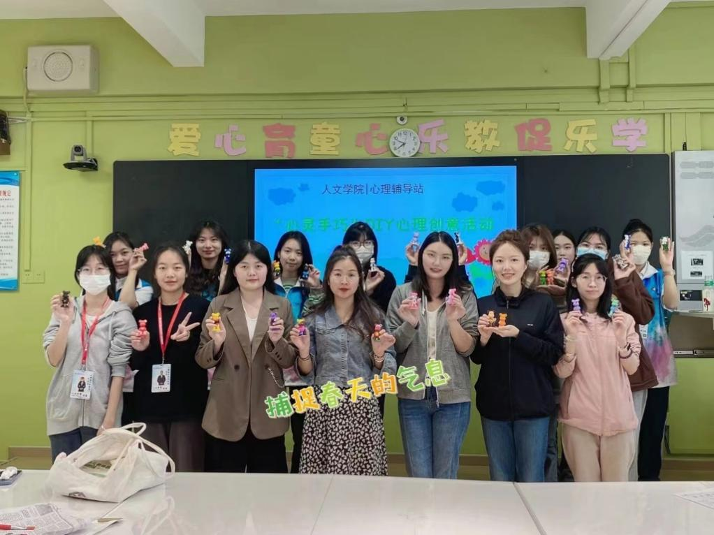 为促进学生形成健康的心理、培养学生的动手能力,人文学院心理辅导站于4月7日下午2:30分在人文艺术楼404课室举办以“心灵手巧”为主题的DIY手作活动。人文学院学工办全体辅导员老师及心理辅导站全体学生干部和部分班级心理委员参加本次活动。