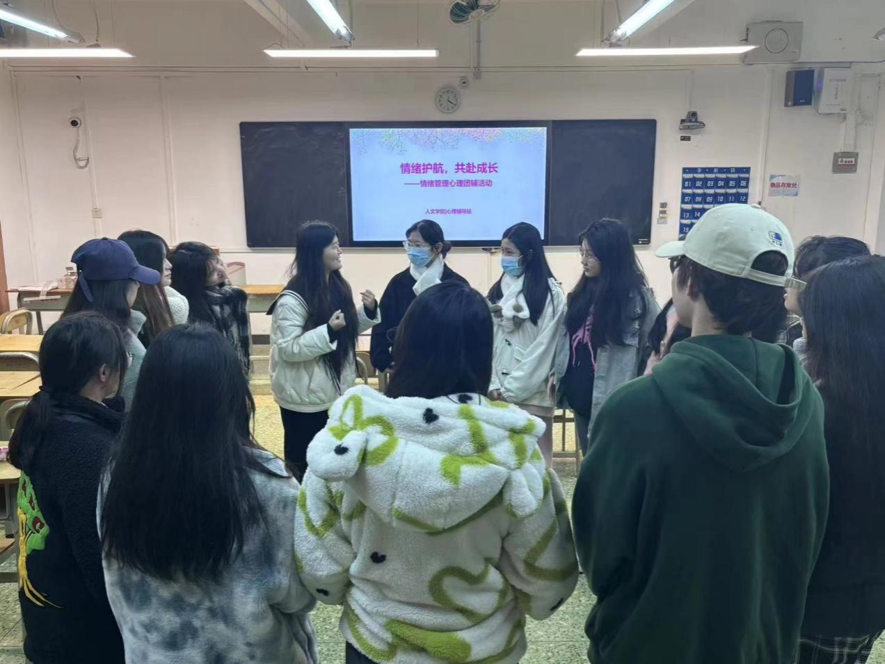 为帮助学生更好地调节情绪,提高心理素质,人文学院心理辅导站于12月19日16:00在人文艺术楼208教室开展以“情绪护航,共赴成长”为主题的社区心理团辅活动。此次活动由心理辅导站指导老师董蕙主持,心理辅导站的干事及22学前创新班全体学生参与此次活动。