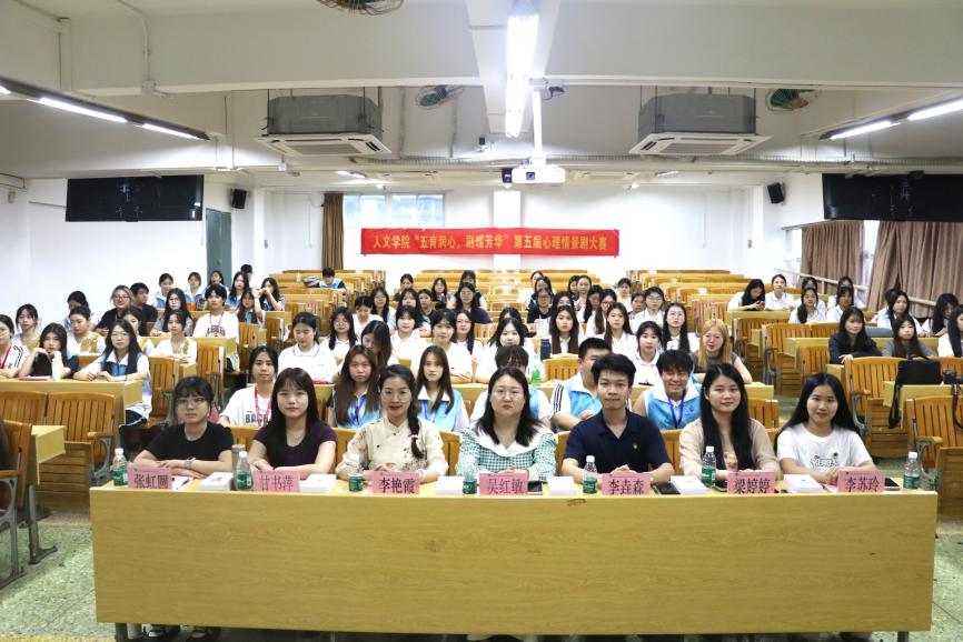 为深化心理健康教育成效,营造积极向上的校园文化氛围,我院心理辅导站于4月24日下午在人文艺术楼505课室举办“五育润心,剧现芳华”第五届心理情景剧大赛。学校学生处心理健康咨询中心老师吴红敏,学院团委书记李垚森,学院党委组织员李艳霞,学生第一党支部书记梁婷婷,艺术与设计学院心理辅导站指导老师甘书萍,学院心理辅导站指导老师李苏玲、张虹圆担任评委。