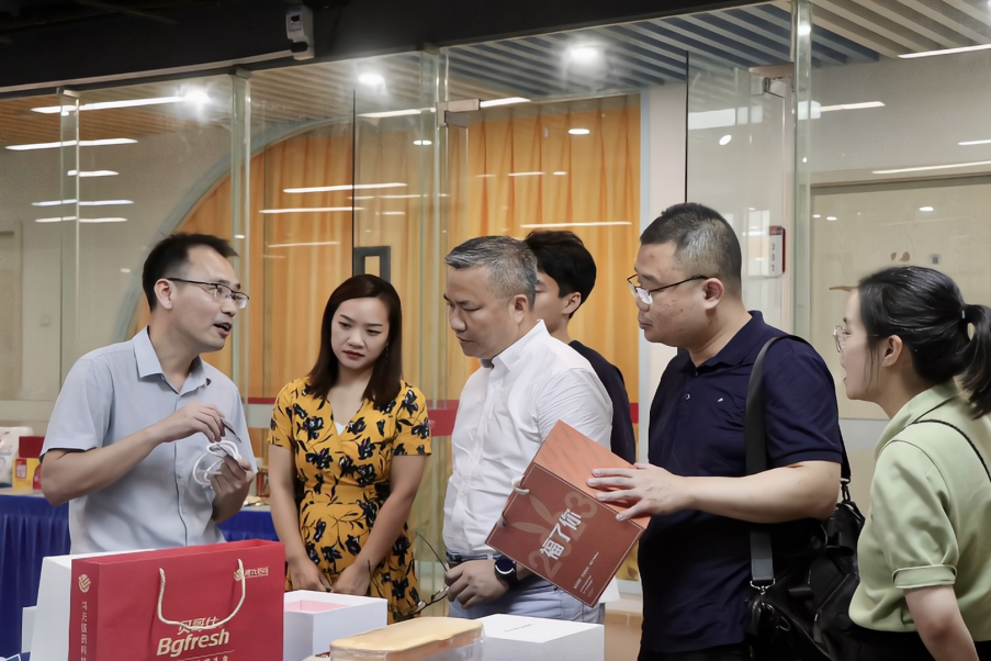 苏崇坚对学校共建“校中厂”产教融合实践基地项目作了详细的政策解读。朱丽芳介绍了学院与联信传媒前期企业合作基本情况,对本次“厂中校”项目落地提出了下一步的规划和打算。洽谈会结束后,姚中华带着我校一行参观了公司数字直播间、展厅、培训基地以及交易市场,实地了解了“厂中校”项目的场地建设、业务经营、市场规模等方面的情况。