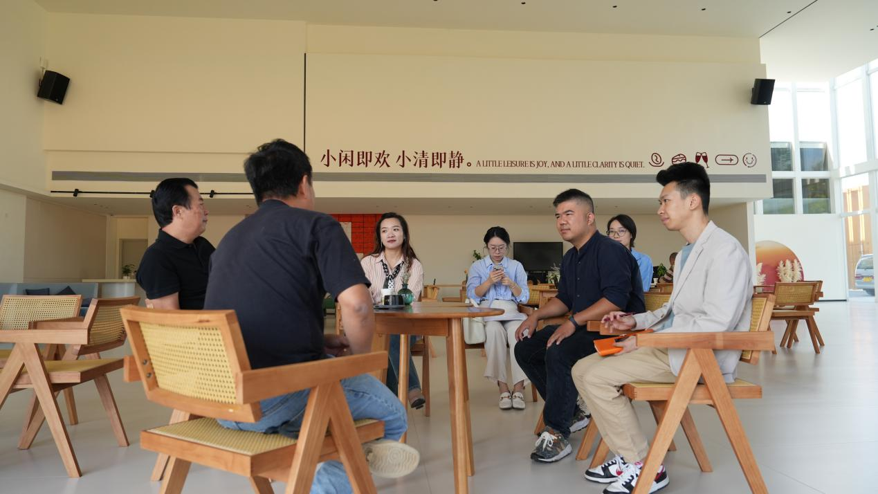 刘钊对我院一行的到来表示了热烈的欢迎,并对企业的基本情况进行简单介绍。他指出,广州徜徉传媒有限公司是一家扎根于从化区的传媒公司,主要经营咨询策划服务、文艺创作、文化艺术交流活动等业务,之前已与学院合作开展了多次活动,希望双方能够继续深化合作基础,扩宽双方合作内容,建立长期稳定的深度合作关系。朱丽芳介绍了学院专业设置、学生规模、校企合作等基本办学情况,她表达了愿与企业在人才培养、技术服务、活动策划、学生实践等方面建立全面合作关系的意愿,实现校企双方协同育人就业无缝衔接。龙轩则表示,希望通过不断整合校企资源,逐渐形成了双向互动的就业合力,拓展与专业匹配的就业岗位资源。