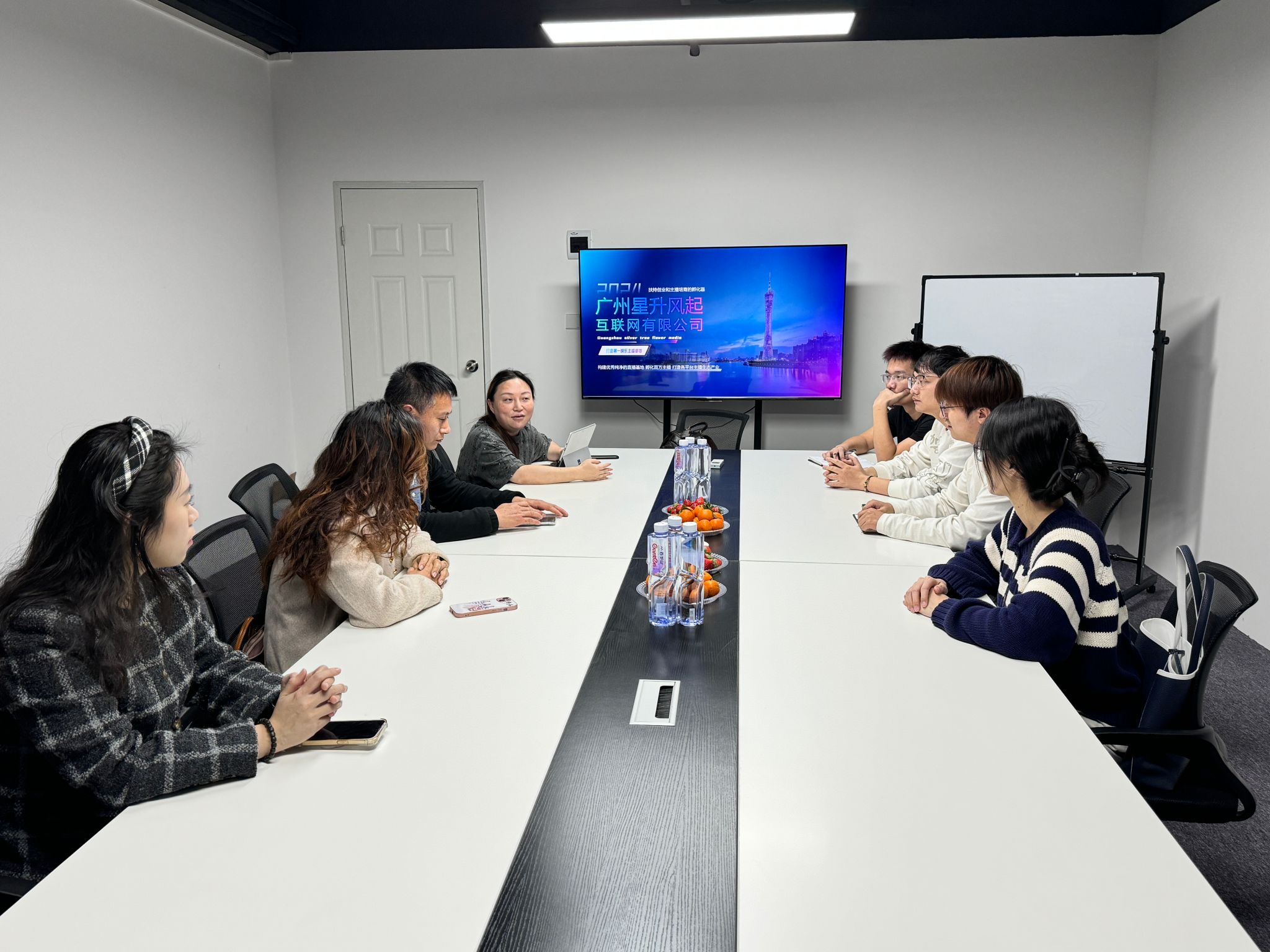 1月3日下午,在凤凰数媒(北京)教育科技有限公司华中区总经理李家文的引荐下,学院副院长朱丽芳带领新闻教研室主任邓雨晴、校企合作专员谭嘉倩、专任教师黄诗琦一行来到广州星升风起互联网有限公司进行访企拓岗促就业交流活动。