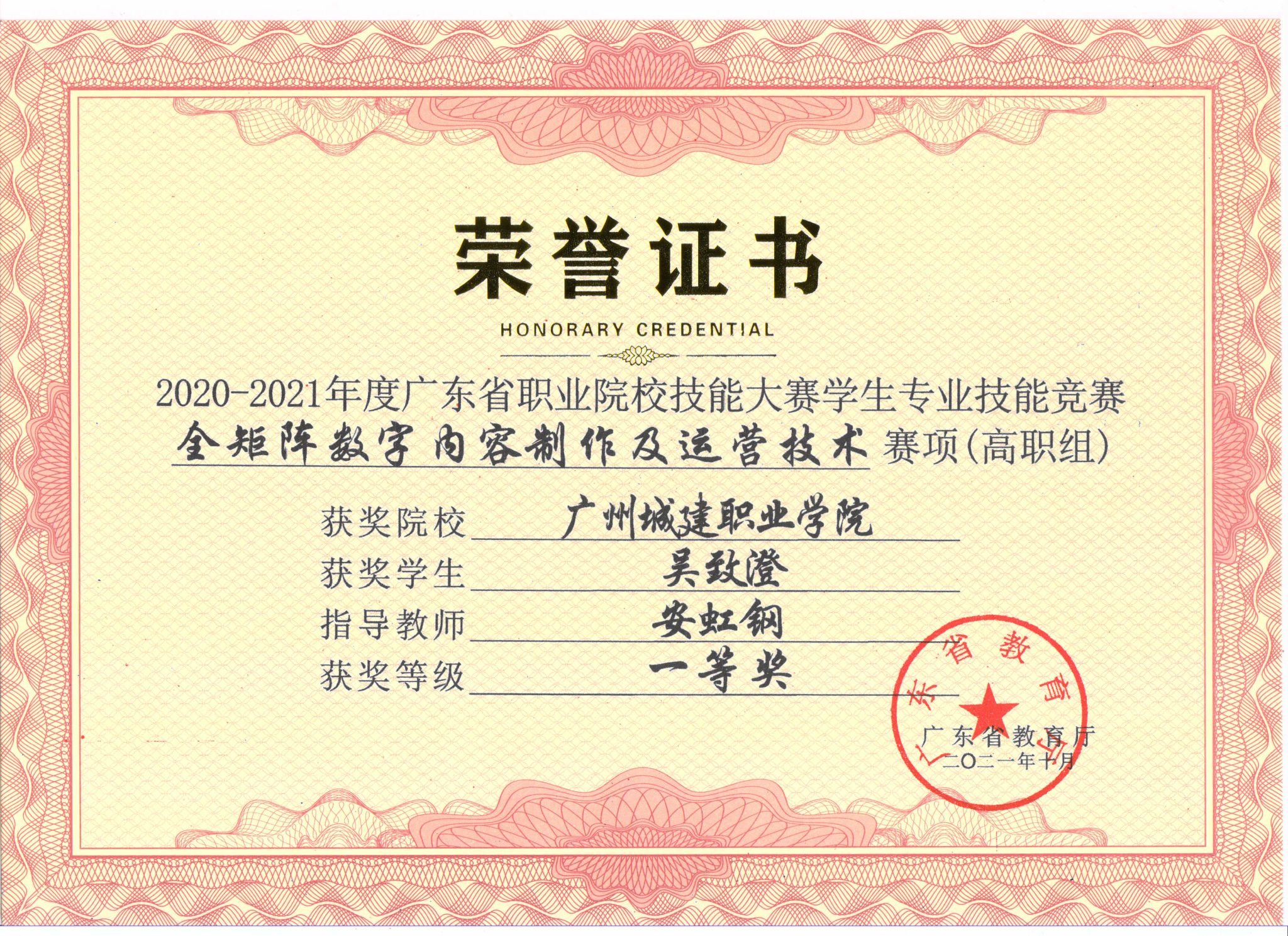 2021-2022年度广东省职业院校技能大赛一等奖