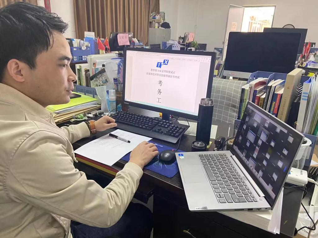 学院高度重视此次“1+X”考试,从学生培训到资源协调均给予了大力支持。考前,学院领导带领教研室老师全力做好组织报名、学生培训、考务筹备等一系列工作,确保考试严谨有序进行、考试服务保障到位。李锦洪和张琴琴两位老师积极组织学生开展考前集训,帮助学生梳理知识点,熟悉考试平台的操作流程。因受疫情影响,临时转为线上考试,两位老师提前2天下载监考设备、组织学生测试考试环境,并制定了严密应急预案。考试中,监考老师严格遵守工作流程,确保考试软件和系统稳定运行,整个过程采用腾讯会议实行监控,各类数据备份有效,服务保障到位,考试秩序良好。