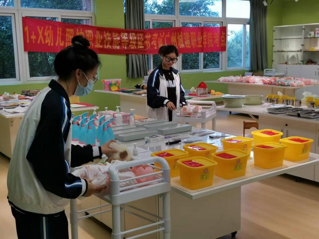 为进一步贯彻教育部开展“学历证书+若干职业技能等级证书”制度试点工作要求,提升学生的专业技能,学前教育专业于2022年11月6日顺利举行“1+X”幼儿照护职业技能等级证书考试工作。学前教育教研室主任管仲平、副主任吴培雪及部分学前教育专业教师、校外督导评委老师担任本次考证主考官。