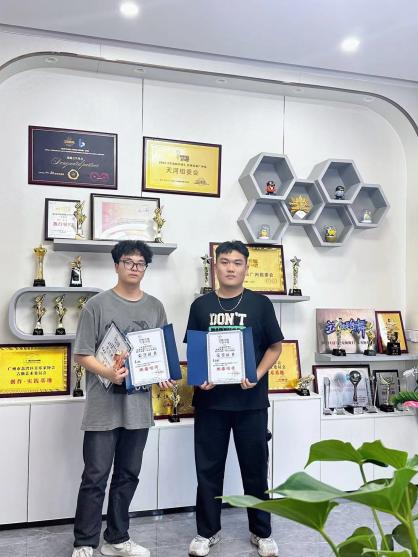 学生与奖状、证书合影