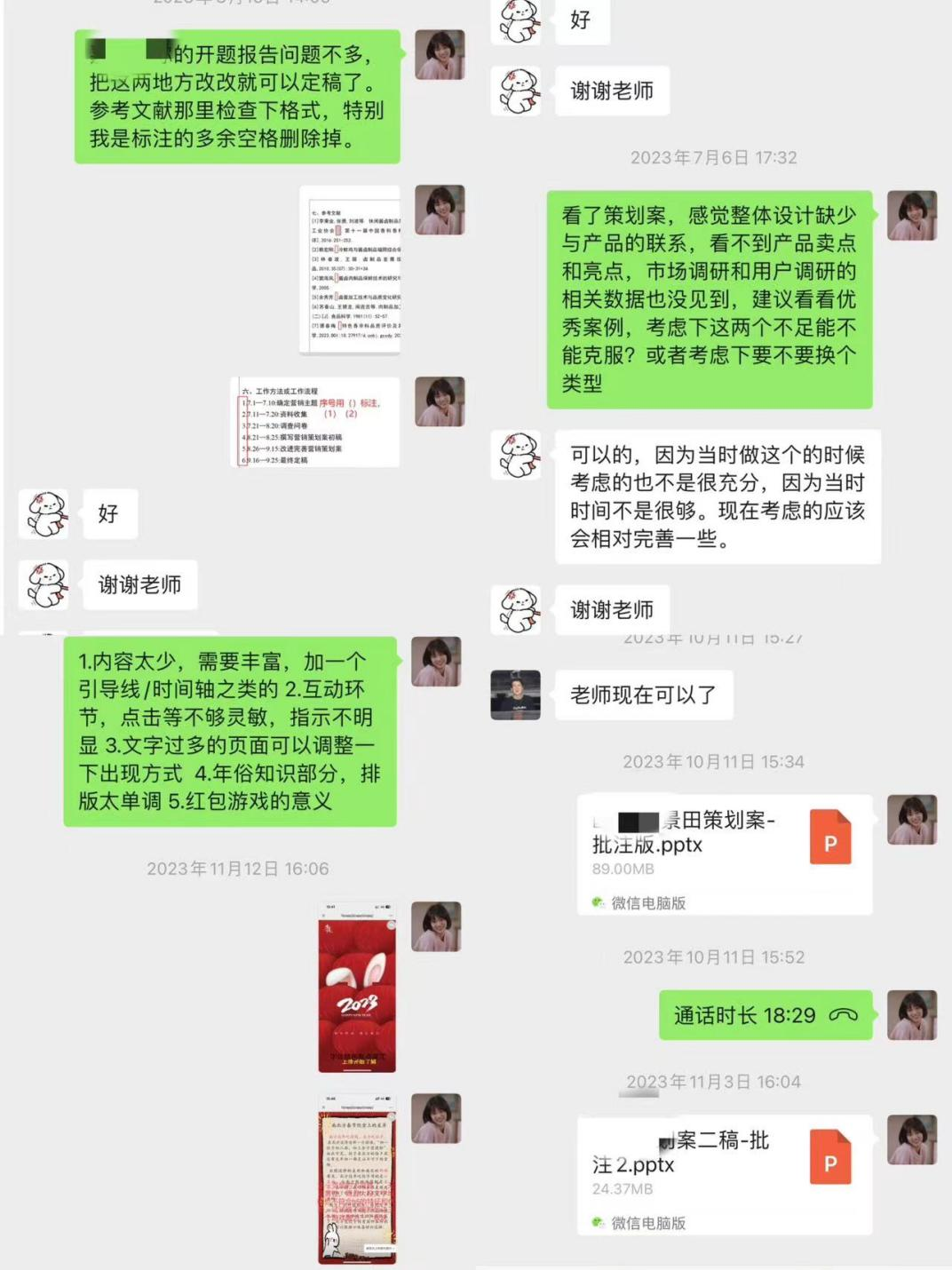 在2024年毕业实践综合项目中,张老师负责指导的学生主要涉及新闻与策划两个专业,共计12名学生。本次实践项目旨在培养学生综合运用所学知识解决实际问题的能力,提升学生的实践与创新意识。在指导过程中,张老师注重对学生独立思考和解决问题能力的培养。前期,要求学生认真查阅相关资料和既往案例,了解研究背景,明确研究目标。中期,针对学生在研究中遇到的问题,给予具体的指导和建议,帮助学生逐步深入,理清自己的思路和方法。后期,利用线下指导的方式,一对一敦促指导学生完善作品细节,力求达到高水平高质量项目要求。经过几个月的努力,学生全部完成综合实践项目的撰写并顺利通过答辩。
